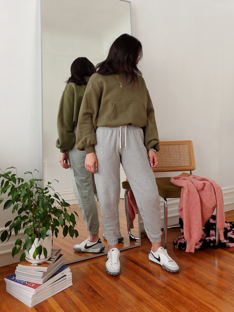 Outfit details: TopShop Hoodie (old style, similar here), Gap Vintage Soft Joggers, Nike Waffle Racer Crater Sneaker